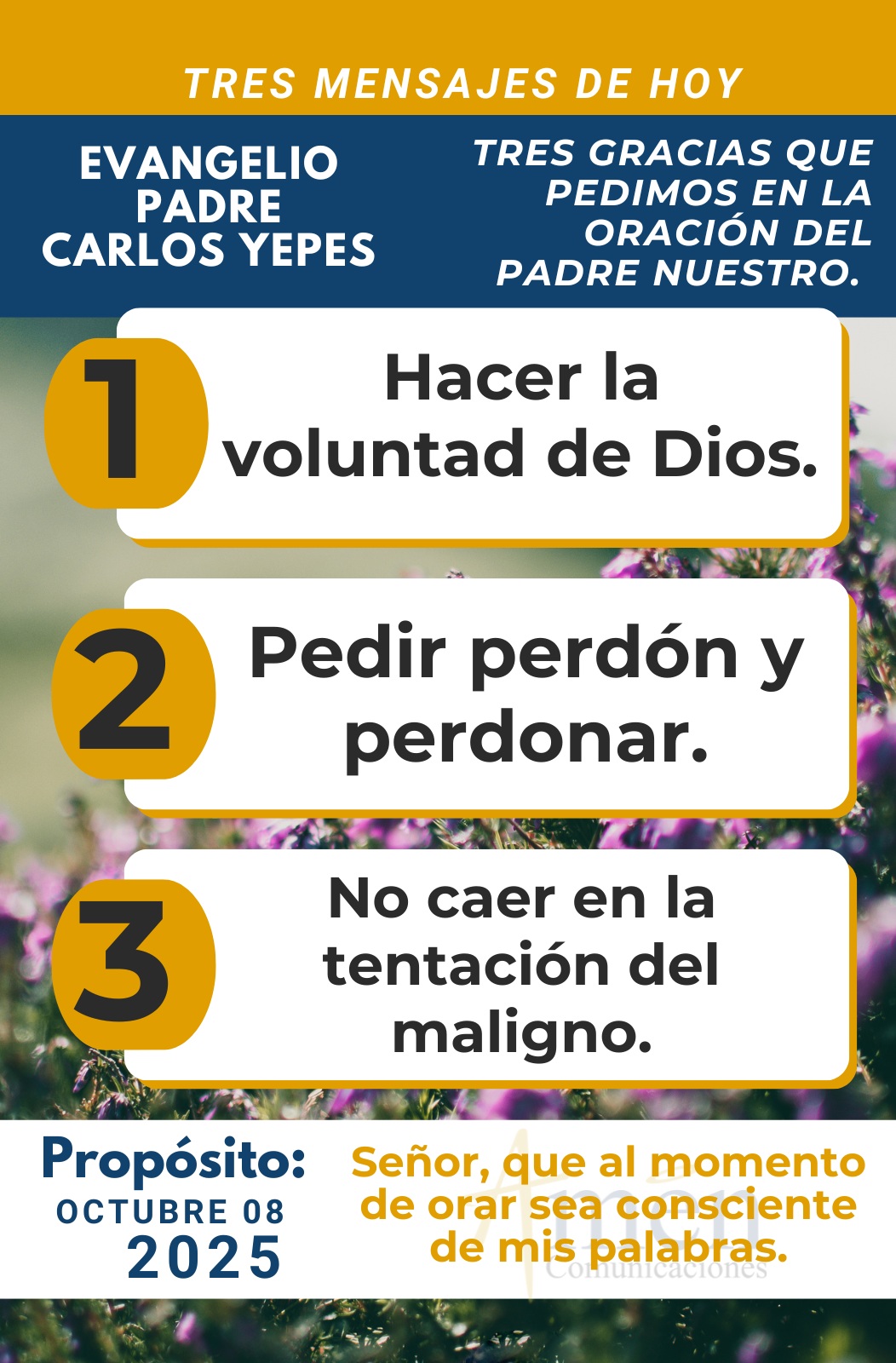 TRANSLITERACIÓN REFLEXIÓN PADRE CARLOS YEPES ¡Padre Nuestro! La primera lectura tomada de la profecía de Jonás en el capítulo 4, nos presenta la gran indignación del profeta cuando Dios, después de enviar a Jonás a profetizar la destrucción de Nínive, se arrepiente de destruir la ciudad, viendo el arrepentimiento y la conversión de todos sus habitantes. Jonás, lejos de alegrarse, se siente indignado y fastidiado porque Dios no ha cumplido su promesa y porque él ha quedado en evidencia ante los habitantes, al ver que su profecía de la destrucción de Nínive, no se ha cumplido. En efecto, nos dirá la primera lectura del día de hoy “que Jonás se disgustó y se indignó profundamente”. Y Dios le dice ¿por qué tienes ese disgusto tan grande?, ¿por qué tienes un disgusto que te lleva a fastidiarte, porque he hecho el bien? Y Jonás, bajo un árbol de ricino, nos dice el texto: “Experimenta un disgusto de muerte”. El Señor le responde: “Tú te compadeces del ricino que he mandado secar, que tú no cuidaste y me ayudaste a crecer. Que en una noche surgió y en otra desapareció. ¿Pero no te compadeces de Nínive como lo hago Yo? ¿La gran ciudad donde había más de 120.000 personas que no distinguían derecha de izquierda y que han convertido su corazón? En el fondo el Señor quiere llamar la atención de Jonás y decirle: “No te fastidies, porque has quedado como un falso profeta al no cumplirse el mensaje de la destrucción de Nínive, sino que debes de alegrarte, porque Yo me he arrepentido (dirá el Señor), al ver la conversión y el cambio de vida de todos sus habitantes”. Siguiendo esta línea sapiencial encontramos el salmo litúrgico 85 cuando repetimos como asamblea celebrante: “Tú, Señor, eres lento a la cólera y rico en piedad”. Y en sus estrofas afirmará: “Piedad de mí, Señor, que a ti te estoy llamando todo el día, alegra el alma de tu siervo, pues levanto mi alma hacia ti, Señor. Porque Tú, Señor, eres bueno y clemente, rico en misericordia con los que te invocan. Señor, escucha mi oración, atiende a la voz de mi súplica. Todos los pueblos vendrán a postrarse en tu presencia, Señor. Bendecirán tu nombre y dirán, grande eres Tú y haces maravillas. Tú eres el único Dios”. En el fondo, el salmo está cantando la bondad, la misericordia, la compasión del Señor por todo hombre, por toda mujer de buena voluntad que se arrepiente sinceramente de sus pecados. Pero pasemos al evangelio de hoy, tomado del capítulo 11 de san Lucas, cuando Jesús en oración (y Lucas es el evangelista que más reseña esta dimensión de Jesús orante). Al terminar de hacerlo, algo notaron los discípulos del Maestro cuando le dicen de manera espontánea quizás viendo la placidez de su rostro, la serenidad de sus pasos, la voz cadenciosa y rítmica que les hablaba cuando ellos espontáneamente le dicen: “Señor Jesús, Maestro Jesús, enséñanos a orar como Juan enseñó a sus discípulos”. Y a renglón seguido, Jesús dirige la famosa y universal plegaria llamada ¡La oración del Señor!, (Pater Noster por su expresión en latín, (Padre Nuestro por su expresión en castellano). Los escrituristas afirman: “Que la palabra más importante es la primera, porque Jesús nos enseña en la persona de los discípulos a sentirnos a todos hijos y a experimentar a Dios Padre amoroso, Padre cercano, Padre querido, Padre que escucha, atiende nuestras plegarias”. Luego se dirigen de manera concreta unas suplicas a Dios: “Que sea santificado su nombre, que venga al mundo su Reino de justicia, de amor, de paz, de vida y de verdad”. Y aunque no lo dice de manera explícita, otros textos paralelos nos hablan “de que se haga la voluntad de Dios en el mundo como ya se hace en el cielo”. Qué hermoso es hacer la voluntad de Dios y qué difícil hacerla porque nos pasamos buena parte de la vida haciendo nuestra personal, caprichosa y a veces rebelde voluntad frente a la voluntad sabia, providente y amorosa de Dios. Como aprendiz de un santo y sabio sacerdote ya fallecido, el gran milagro en la vida no es que Dios haga mi voluntad, sino que yo haga la voluntad de Dios. Te lo diré de otra manera, todo el tiempo nos pasamos pidiéndole a Dios que se cumpla mi sueño de vida, mis deseos personales. Pero pocos preguntan a Dios ¿cuál es el sueño o el deseo divino sobre nuestra vida? No se trata de cumplir mi sueño en la vida, sino de cumplir el sueño de Dios sobre mi existencia, sobre mi historia. Solo así no nos equivocaremos. Pero después de estas súplicas iniciales dirigidas al Padre Dios, donde pedimos “que sea su nombre santificado y bendito, que venga su Reino de justicia, de amor, de paz, de libertad y de que se haga su voluntad providente sobre cada uno de nosotros”. Entramos a súplicas más humanas, más terrenales, más cercanas a nuestra precariedad y necesidad personal, “pedimos el pan cotidiano”. Llama la atención que no decimos “dame, Señor, el mercado para el mes, sino el pan para cada día”. Quizás porque Dios conoce nuestra pobre condición humana, y si nos hubieran enseñado a orar pidiendo el mercado del mes, tal vez lo buscaríamos cada 30 días al final del mes y no nos acordaríamos de Él. Pero al pedir el pan diario, esto nos obliga a acordarnos, a hablar y a suplicar diariamente al Dios Padre, al Dios providente, al Dios que nos da el sustento de cada día. Pero pedimos también “el ser perdonados en nuestras ofensas, como también nosotros perdonamos a los que nos ofenden”. No hay otra alternativa, y así cada día, en la oración del Pater Noster u Oración del Señor, pedimos no solamente perdón por nuestras ofensas, si no tener la capacidad para perdonar de corazón a aquellos que nos han lastimado, que nos han ofendido en la vida. Concluirá la oración del Señor “pidiendo que no caigamos en tentación”. Esto presupone que seremos tentados, inducidos al mal, tratados de ser apartados