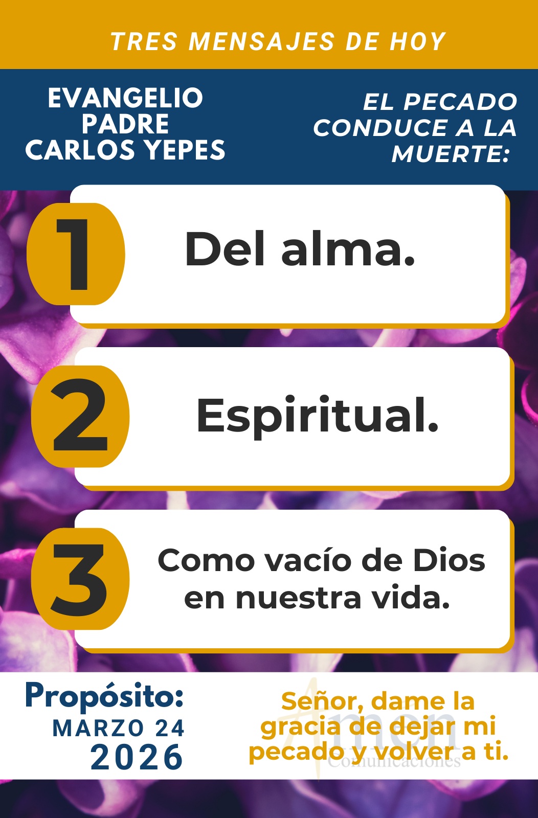 Entiende que la muerte no la da un disparo, la muerte no la da la vejez, la muerte no la da la enfermedad, la muerte no la da solamente un accidente; la muerte interior, la muerte del alma, la muerte espiritual, la muerte como vacío de Dios en nuestra vida la genera el pecado personal. Y en esta primera parte de Juan, capítulo 8, Jesús dirá tres veces: “Ustedes morirán por su pecado si no son capaces de creer”.